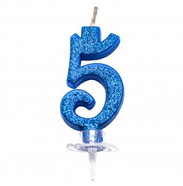 candela magica blu glitterata numero 5
