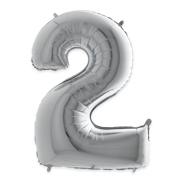 numero 2 argento in mylar da 36 cm