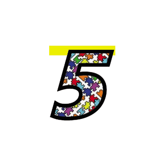 numero 5 in cartoncino multicolor